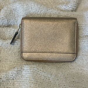 Chic Coach wallet in metallic gold. Compact and stylish. Perfect for essentials.