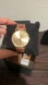 Stylish Coach watch featuring a gold face. Heart design on the strap adds charm.
