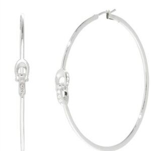 Stylish gold hoops with intricate black pattern. Perfect for any occasion.