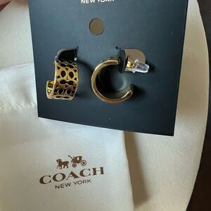 Coach Gold and Black huggie Hoop Earrings