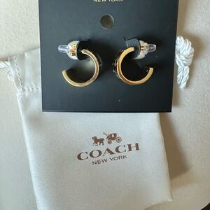 Stylish Coach small huggie hoop earrings. Black and gold logo. Comes with dust bag