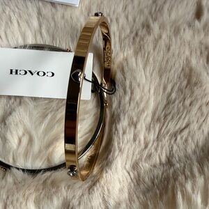 Elegant Coach bracelets featuring a sleek gold and silver design. Perfect for adding a touch of sophistication.