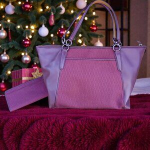 Coach Gorgeous $614 Legacy Jacquard Tote & Matching Wallet Set EUC