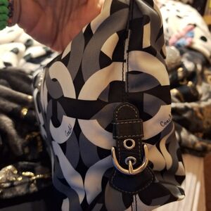 this gorgeous black and grey coach shoulder bag with purple interior is in perfect condition she as no callouts her birthday is 2017