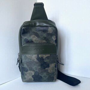 Coach Gotham Pack Sling Camo Green Signature Leather Mens Crossbody CAF37