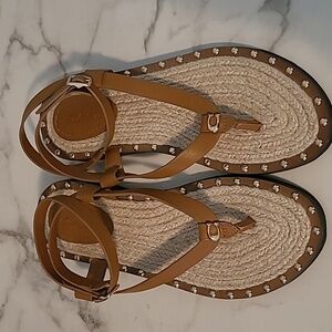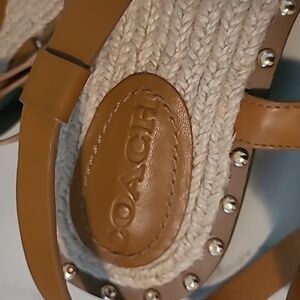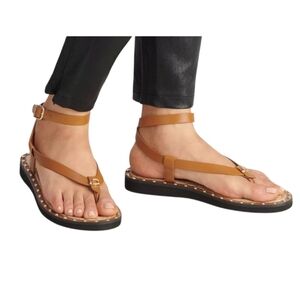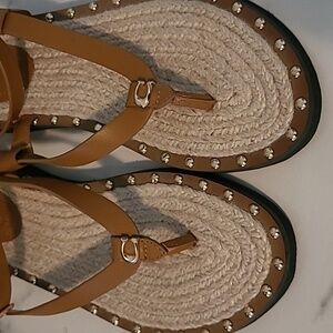 Coach Gracey Thong Sandals British Tan Leather Studs Gold Signature C Wmns 6.5