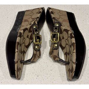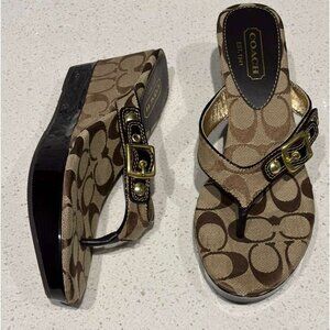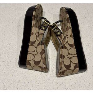Coach Gracy Women’s Signature Logo Wedge Sandals Platform Thong Brown Size 7.5M
