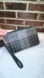 Elegant wristlet with a checkered pattern by Coach. Features black and yellow accents. Gold tone Pinmount logo on the front and hardware. Ideal for essentials. Twill interior with 2 card slots. Detachable wristlet strap. Excellent condition with no rips, tears or stains.