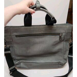 Coach Gray Leather Messenger Tote Brief Bag w/Strap