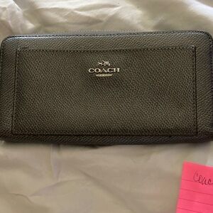 Stylish Coach wallet in a gray metallic. Ideal for keeping essentials organized and being stylish!