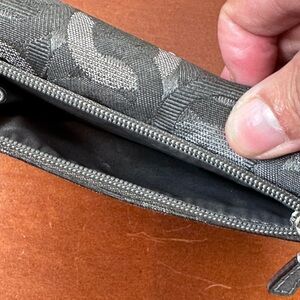 Elegant Coach wallet in a sophisticated gray tone. Perfect for organizing your essentials with style.