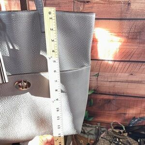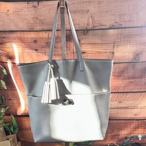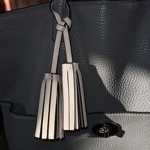 This stylish gray tote from Coach features a structured design, providing ample space for your essentials. Its smooth finish and decorative tassels add a touch of elegance, making it perfect for both casual outings and formal events.