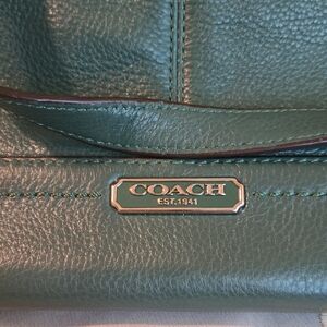 Experience the perfect mix of elegance and practicality with the Coach Green Leather. Made from textured leather this spacious bag boasts a structured rectangular shape, ideal for everyday use. Its sophisticated green color enhances any outfit with a touch of class.