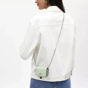 Coach Green Mini Wallet On A Chain Soft Leather NWT $198