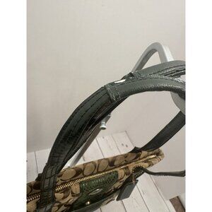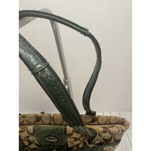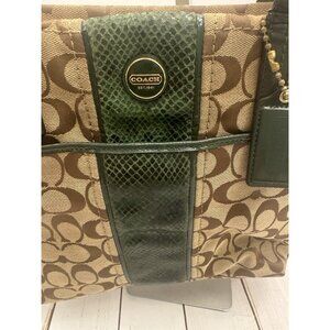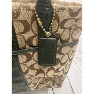 Coach Green Tan Signature Snake Stripe Tote Bag Hangtag F25706 GUC (Straps Wear)