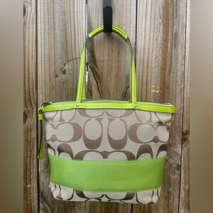 Coach Green and Tan Leather Tote Bag