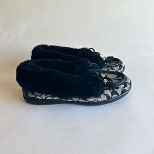 Coach Grey Black Canvas Sheepskin Fur Rubber Outsole Slippers size 7.5
