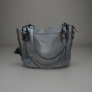 Coach Grey Leather Kristin Spectator Hobo Handbag Purse, Animal Print Top Handle