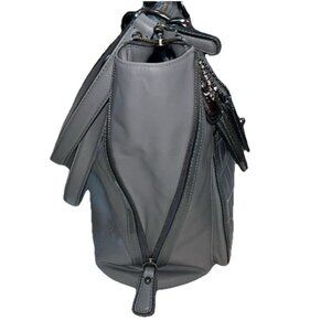 The Coach Grey Leather Kristin Spectator Hobo Handbag Purse is a stylish and versatile accessory for women. Made of luxurious leather with a satin lining, this medium-sized shoulder bag features a trendy animal print top handle, adding a touch of sophistication to any casual outfit. With multiple pockets and a secure closure, this hobo bag is practical and chic, perfect for everyday use. Crafted by Coach, this handbag combines quality craftsmanship with a fashionable design, making it a must-have piece for any fashion-forward woman.