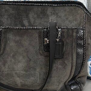 Coach Grey Suede with "Snakeskin" Trim Handbag Brand New wo Tags