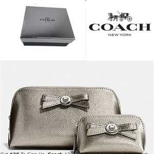 Coach Gunmetal Turnlock Bow Cosmetic Bag Box Set