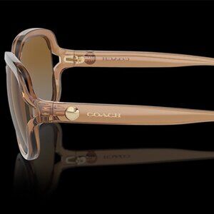 Embrace the timeless sophistication of Coach with these HC8169 L149 sunglasses. Featuring a square silhouette and modern transparent brown frame, these shades are elevated by brown grey gradient polarized lenses that offer superior clarity and UV protection. Signature Coach details—including iconic horse-and-carriage motifs and brand lettering—add a refined, urban edge that nods to the brand’s New York City heritage.