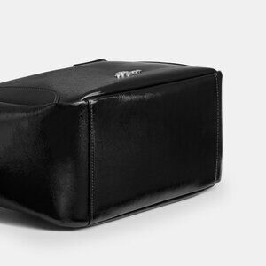 Crinkle ๐ฃ๐ฎ๐๐ฒ๐ป๐ ๐น๐ฒ๐ฎ๐๐ต๐ฒ๐ฟ (๐๐ต๐ถ๐ป๐) and smooth leather Inside zip pocket Turnlock closure fabric lining Handles with 11 1/2 drop 10 3/4 (L) x 9 1/2 (H) x 5 (W) Style No. CCF05