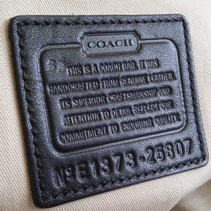 Style 25807 - This Legacy Two Tone Satchel is in good condition. Tag included, but bag has been used. Silver hardware and Mushroom/Black soft Glovetanned Leather. Zip Top closure with two zipper pulls to meet in the middle. Interior lining is Cotton Twill with a zippered pocket and an organization panel of two open pockets. Feet protectors on the bottom and measurements of 13 x 8 x 6.5. Care instructions and iconic Coach Hang Tag included. Mark on bag shown in last photo.