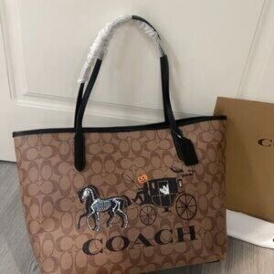 Coach Halloween tote and pumpkin driver coach wagon new