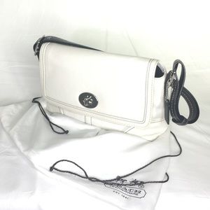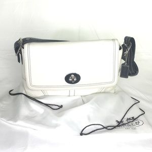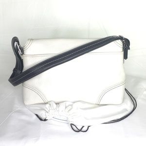 Coach, Hamilton, Flip top genuine pebbled leather Ivory and convertible espresso brown Strap Shoulder Bag # F13085 Shoulder or Cross Body Bag