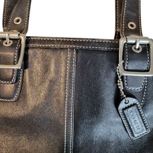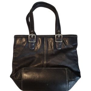 Coach Hampton Black Leather Tote Shoulder Bag Style 9572 with White Stitches Y2K