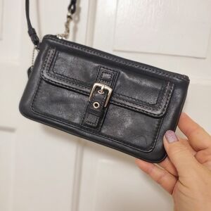 Coach Hampton Black Leather Wristlet