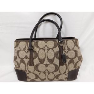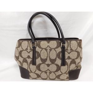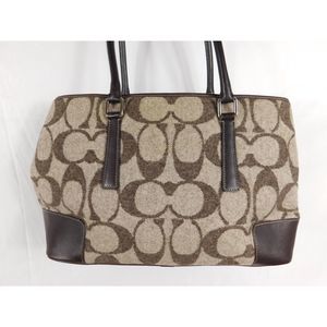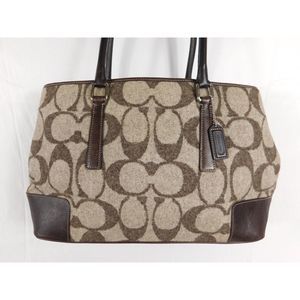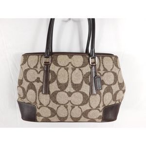 Coach Hampton Brown Monogram Wool Leather Trim Satchel