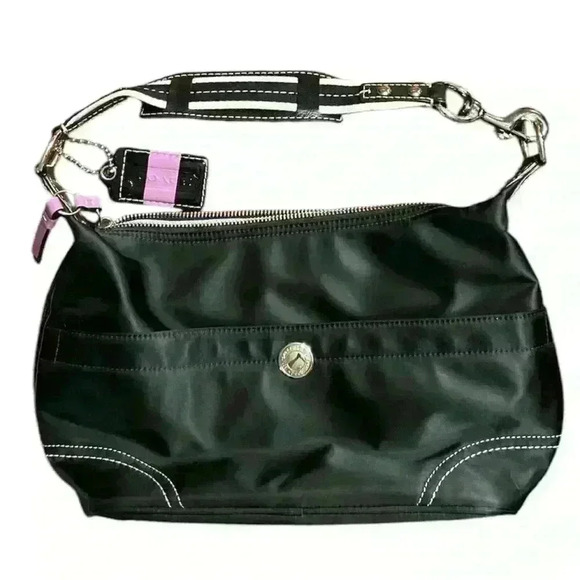 Coach Hampton Mini Hobo Bag with Lilac trim and Striped Strap