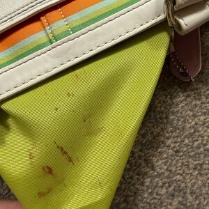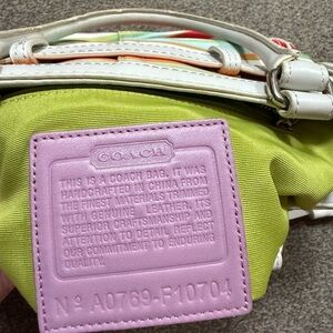 Coach Hampton Multicolor Canvas White Leather Trim Stripes Satchel Tote Bag