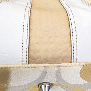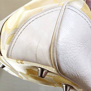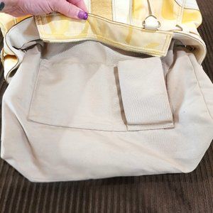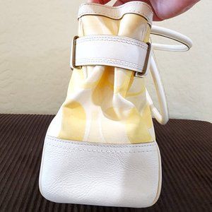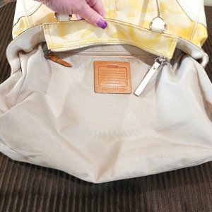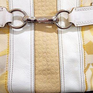 Tags: Coach, C logo, canvas, leather, white, yellow, double handle, unique, classy, summer, spring, vintage, hampton, rich, dressy, classy, casual, travel, office, school