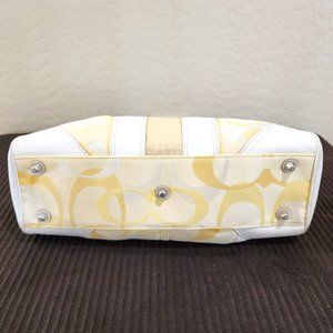 Coach Hampton Optic Signature Stripe Yellow White Double Handle Shoulder Bag