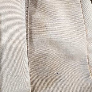 There is some wear to the exterior corner edges, a tiny bit of soiling on the right side of the bag just above the leather, and some rub wear to the signature stripe down the middle.