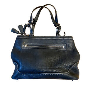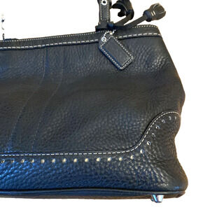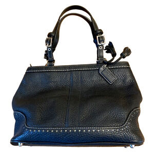 Coach Hampton Pebbled Leather Tassel Satchel Handbag Purse Black Silver 2-Handle