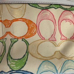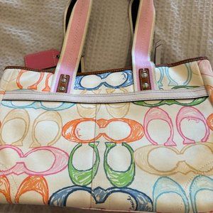 Coach Hampton Pink Cream Multi-Color Signature Scribble Tote Bag