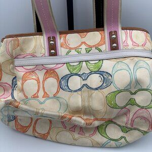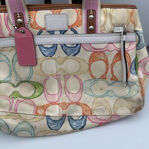 Coach Hampton Scribble Tote Bag Multicolor Canvas Leather Trim