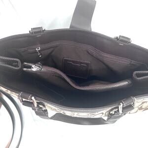 Coach Hampton Shoulder Handbag Purse Brown Signature C Jacquard & Leather -