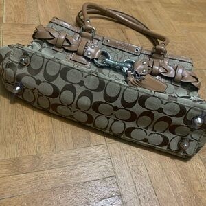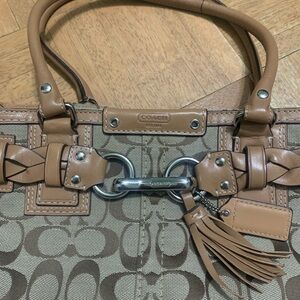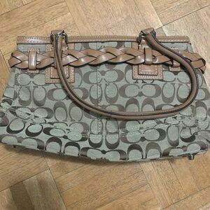 Coach carry tan with leather braid and straps purse. In great condition