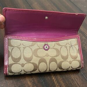 Coach Hampton Signature Leather Slim Envelope Wallet Khaki Plum Purple RARE