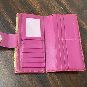 Coach Hampton Signature Leather Slim Envelope Wallet Khaki Plum Purple RARE
