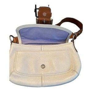 Coach Hampton Soho Satchel Ivory Saddle Leather Buckle Handbag