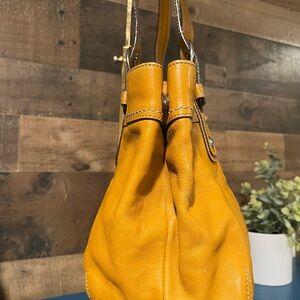 Beautiful caramel color ,mustard golden yellow , cognac. Satchel tote. Has big hangtag. Clean. Inside has a few marks. Overall great condition. Made in 2010.