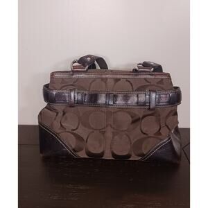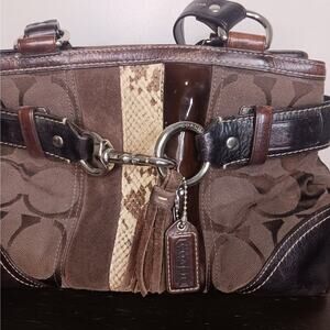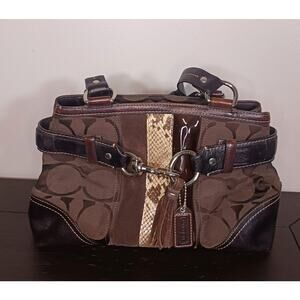 Coach Hampton Stachel Logo Animal Print Brown Handbag