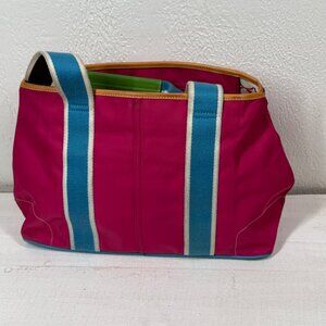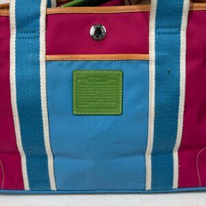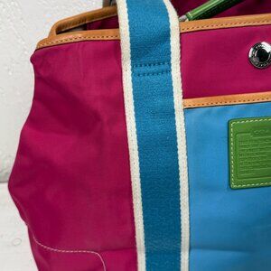 Coach Hampton Weekend Colorblock Nylon Canvas Tote Bag Pink Blue