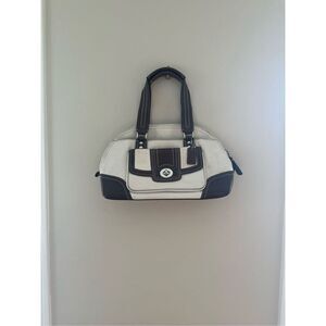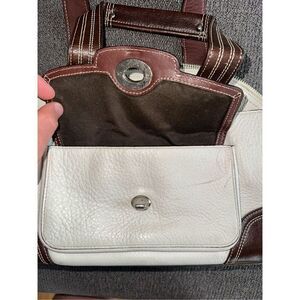 Coach Hampton Pebbled Leather Satchel Bag Cream Brown